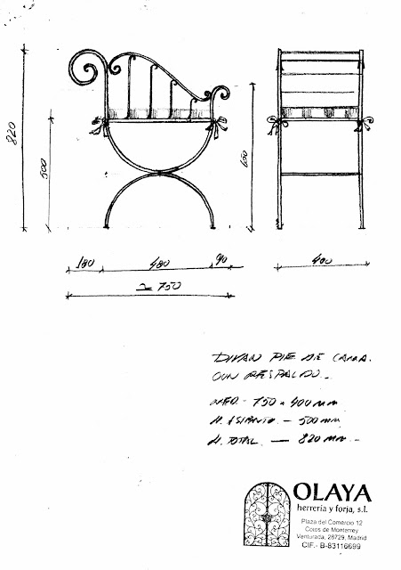 Otro diseño de diván, en este caso con adornos de hoja de parra.