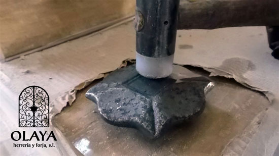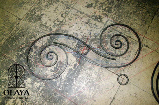 Vamos forjando los diferentes rizos y adornos de la barandilla.