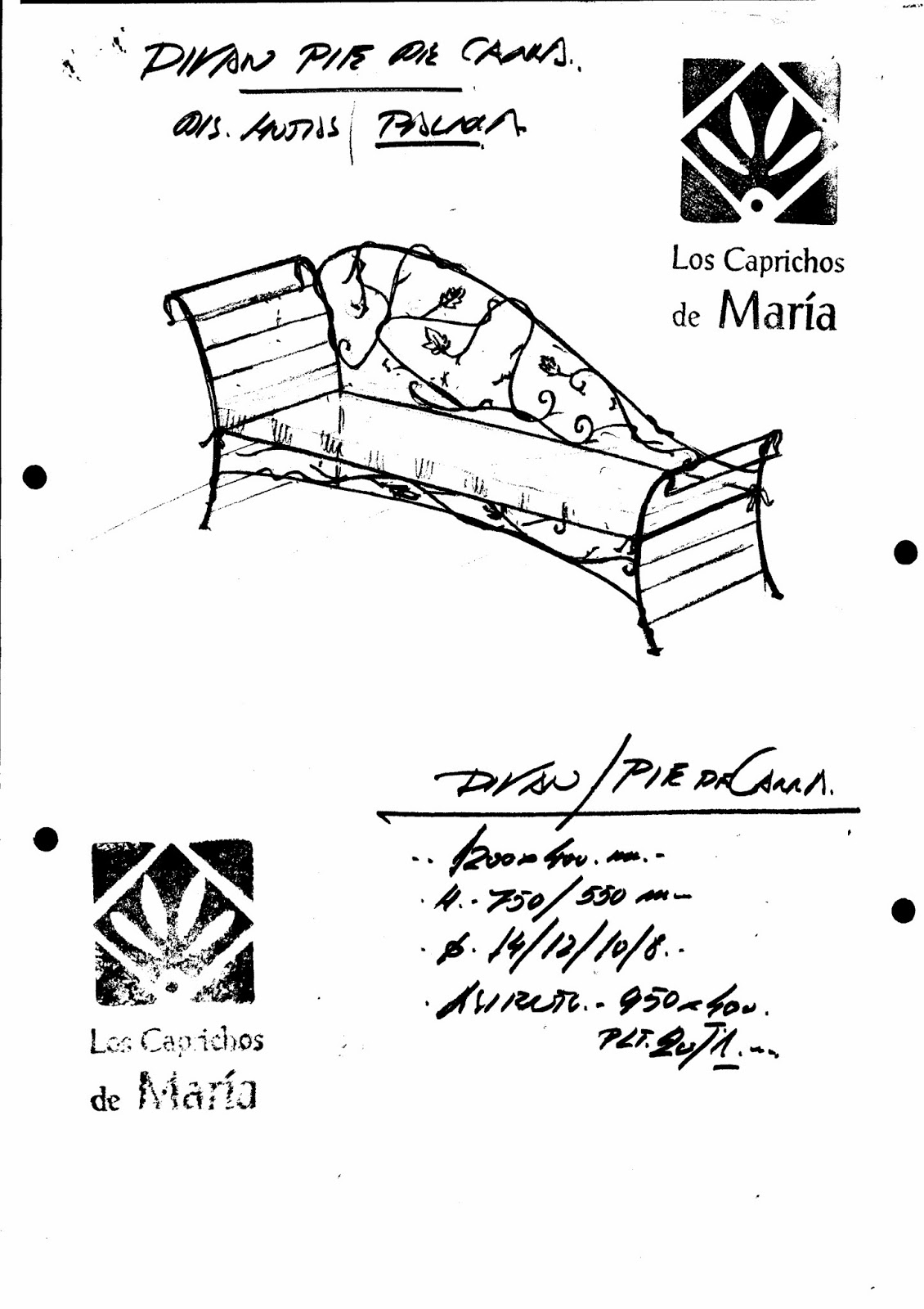 Otro diseño de diván, en este caso con adornos de hoja de parra.