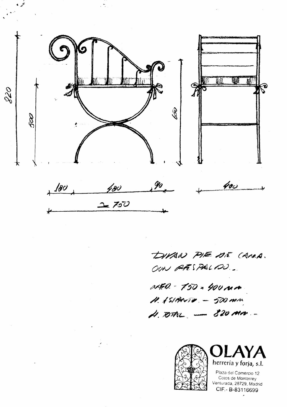 Fabricado con varilla redonda maciza de varios grosores, y forjada y curvada a mano.